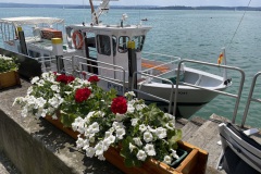 Da der Rheinfall nur wenige Kilometer vom Bodensee entfernt ist und wir mit dem Bodensee als ersten See unserer Seerundfahrt anfangen, fahren wir jetzt nach Meersburg zum Wohnmobilstellplatz „Allmend 2 in Meersburg“ 47°42´6´´N/9°16´19´´E und stehen sehr schön Altstadt nah. Zu Fuß sind wir in 15 Minuten in der Kleinstadt Meersburg, die im baden-württembergischen Bodenseekreis am Bodensee in Nähe von Friedrichshafen liegt. Sie liegt auf einer Höhe von 400 bis 500 Meter und zwischen der Ober und der Unterstadt besteht ein Höhenunterschied von 40 Meter. Das merken wir schnell auf dem Weg zum See, denn wir wollen eine Bootsfahrt zur Insel Mainau unternehmen. Da wir nicht so gerne mit einen großen Schiff fahren wollen, haben wir Glück und können am Anleger bei einer Gaststätte mit der MS Fritz mitfahren.Das kleinere Boot ist ausreichend für etwa 20 Personen und es ist gemütlich. Wir kaufen schnell Tickets und es geht auch schon gleich los. Die Insel Mainau auch Blumeninsel genannt, ist mit 45 Hektar die drittgrößte Insel im Bodensee. Am Südufer ist sie über eine Brücke zu erreichen und verfügt außerdem über einen Schiffsanleger. Die Insel ist wie ein riesiger Park mit sehr vielen Blumen, ausgefallenen Pflanzen und Bäumen. Das große Schloss auf der Insel ist teilweise zur Besichtigung zugänglich. Interessant ist auch der Schwedenturm. Sehr schön ist außerdem der Palmengarten und das Schmetterlingshaus mit 80 verschiedenen Arten, einen Wasserfall und exotischen Pflanzen. Wer die Insel erkunden möchte, macht am besten mit einer Karte die es am Eingang gibt, denn es gibt unendlich viele Wege und Sehenswertes. Unter anderem die italienische Blumen-Wassertreppe, den Stauden und Rosengarten. Wir legen an und betreten die Insel. Wir waren alle schon mal vor Jahren da und hatten einfach Lust die Insel noch mal zu besuchen. Vor allem das Schmetterlingshaus, aber nachdem wir den Eintrittspreis gehört haben, war für uns schnell klar, mit der nächsten Fahrt zurück zu fahren. So viel Geld für etwas was wir schon kennen, war es uns dann doch nicht wert. Solange haben wir den Aufenthalt hier am Anlieger genossen. Es gab auch hier viel zu sehen wie die Mammutbäume, Zedern, ein kleines Beet mit verschiedenen Palmen und das Treiben hier an den Anlegern. Somit haben wir jedenfalls eine Seerundfahrt auf dem Bodensee genossen.
