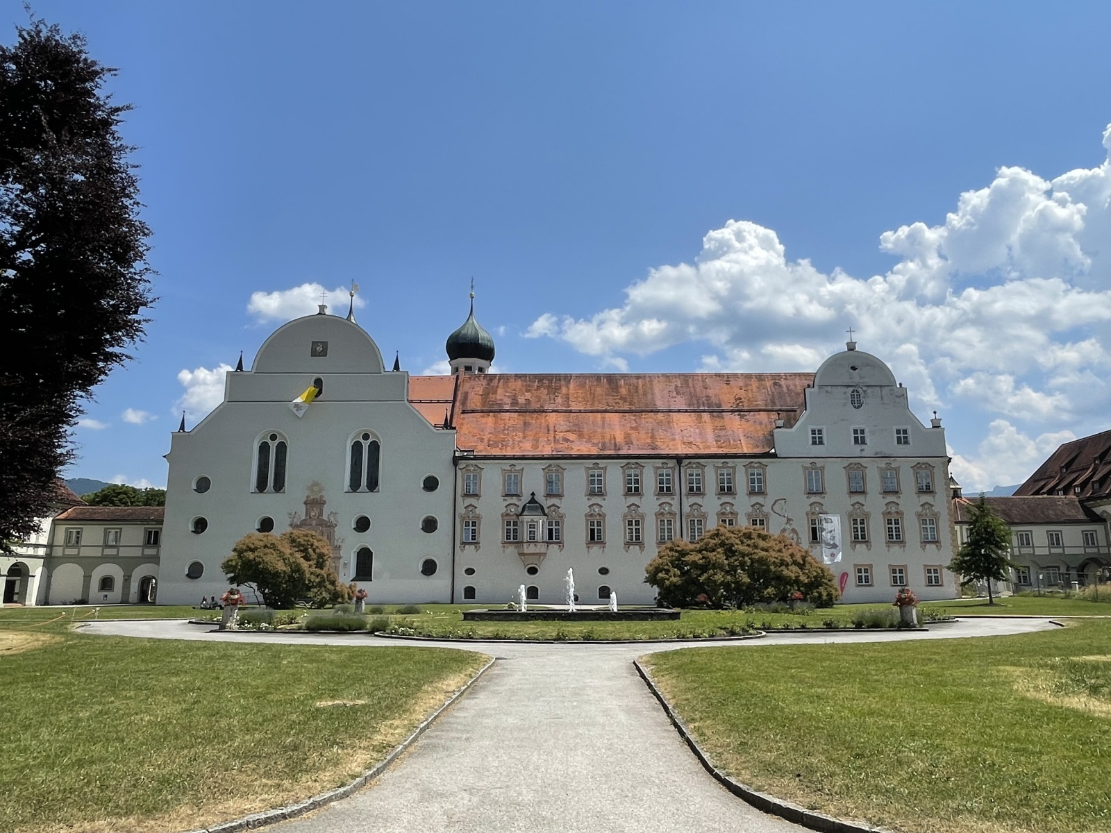Mit auf unserem Plan steht das Kloster Bebediktbeuern. Schon von weiten sehen wir schon die Zwiebeltürme der Basilika von dem Klosterdorf in Oberbayern zwischen Benediktenwand und Loisach-Kochelsee-Moor im Tölzer Land. Das Kloster Benediktbeuern gilt als eines der ältesten Klöster in Oberbayern, ist eine ehemalige Abtei der Benedikter und heute eine Niederlassung der Salesianer Don Boscos. Sie bilden eine der größten Männerordensgemeinschaften der römisch-katholischen Kirche und sind weltweit aktiv. Es ist schon ein ziemlich großer Gebäudekomplex. Schon die Fassade ist beeindruckend. Wir betreten das 1250 jährige Kloster und sehen die Säulengänge im Arkadenhof. Diese gehen wir erst einmal entlang und besichtigen diese barocke Anlage. Es gibt hier einen Klosterladen, die Klosterbibliothek, den Kräuterladen und Klostercafé. Hier besichtigen wir mehrere Räume. Dann besichtigen wir die Basilika St. Benedikt und das Rokokojuwel die Anastasiakapelle, die sich an der Nordostecke befindet. Was soll ich sagen? Ich fühle mich erdrückt von so viel Prunk. Aber macht euch selbst ein Bild und plant einen Ausflug nach Benediktbeuern, wo ihr das 739 gegründete und damit älteste Kloster Oberbayerns besuchen könnt. Entdeckt das Kloster, die ehemalige Abteikirche und heutige Pfarrkirche St. Benedikt, den Vorraum der Anastasia-Kapelle, den gotische Kreuzgang aus dem Jahre 1493 mit gotischem Saal und barockem Kapitelsaal und die Ausstellung über das Kloster im ehemaligen Weinkeller im Kreuzgang. Es lohnt sich.