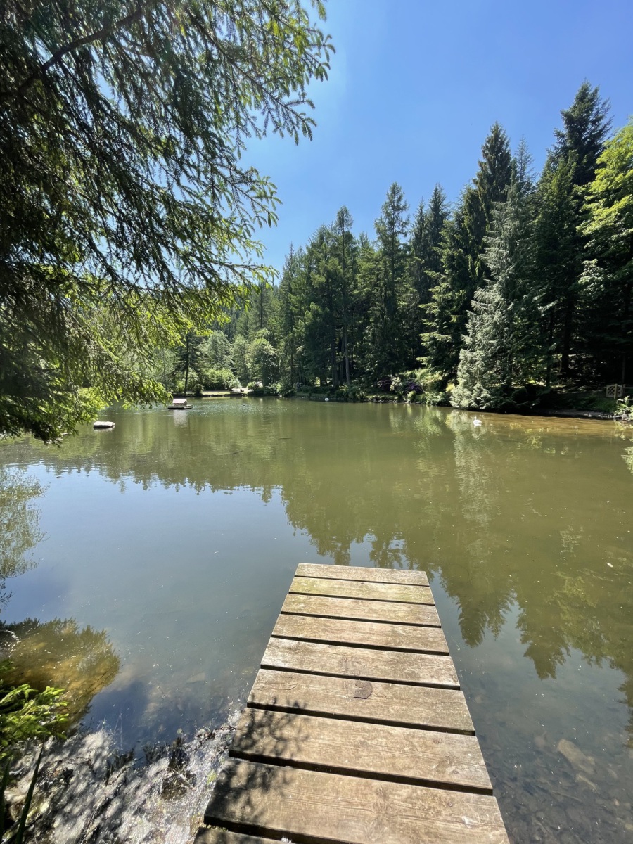 Wenn wir schon die Schwarzwaldklinik anfahren, dann darf doch das Wohnhaus von Familie Brinkmann nicht fehlen. Das Heimatmuseum Hüsli in Grafenhausen-Rothaus im Landkreis Waldshut ist ein im Stil eines Schwarzwaldhauses Heimatmuseum und als Wohnhaus von Professor Dr. Brinkmann international bekannt steht unter Denkmalschutz. Mit seinem heruntergezogenen Dach, den gemütlichen Stuben mit bemalten Decken, Türen, Wandschränken und Kachelöfen ist das Hüsli, wie das ihr Haus genannt wird, ein architektonisches Gesamtkunstwerk. Die gesammelten Uhren, Porzellan und Hinterglasbilder, Gemälde, Glas und Schnitzkunstwerke- alles wird im Original-Interieur gezeigt. Nach der Besichtigung gehen wir am Haus vorbei und entdecken einen Wanderweg zum Schlüchtsee der nach Klaus-Jürgen Wussow benannt ist.