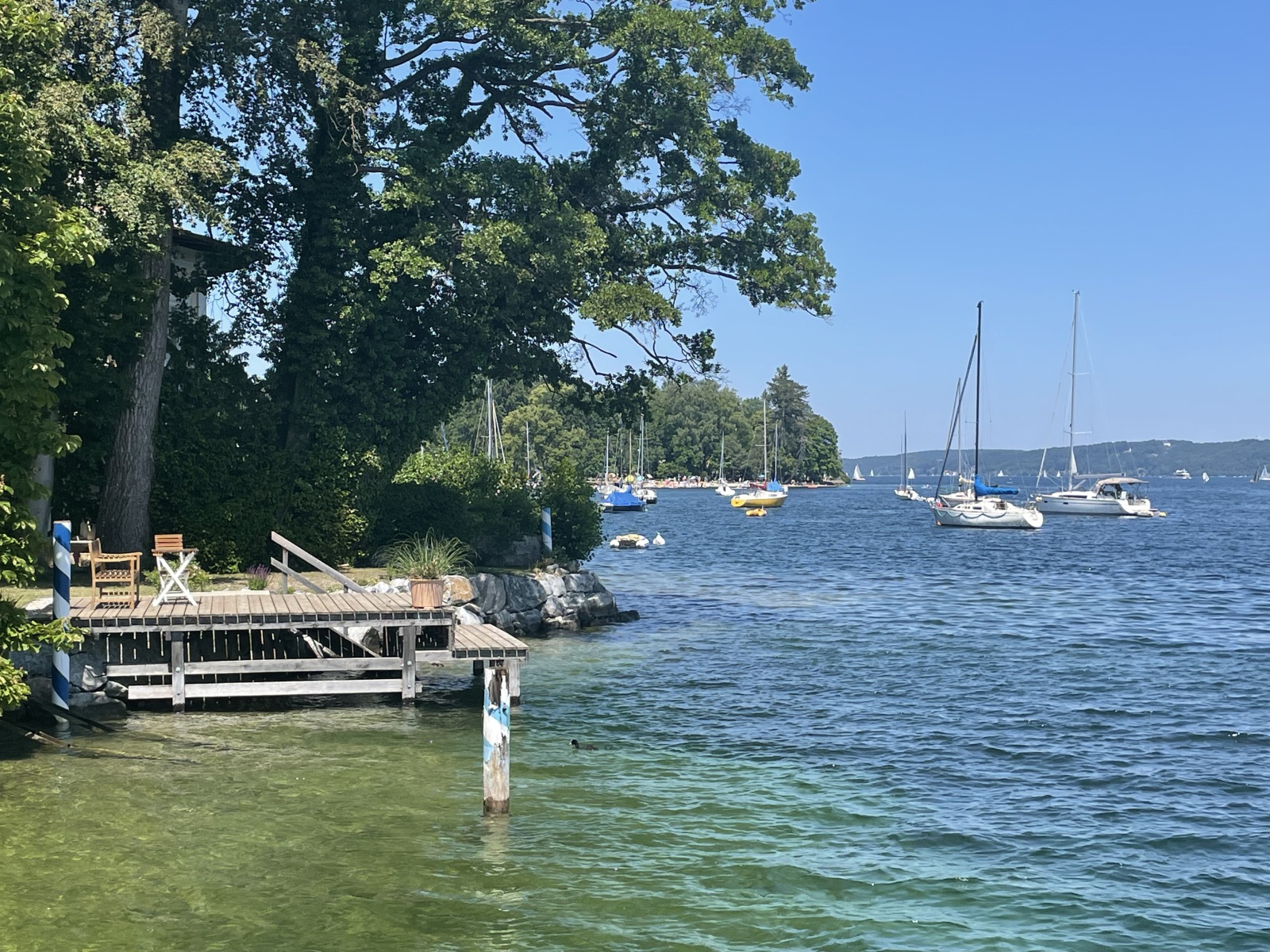 Es geht zum Starnberger See ist ein See hier in Bayern und der fünftgrößte See Deutschlands. Der See ist auch durch den ungeklärten Tod von König Ludwig II bekannt. Zur Erinnerung gibt es in dem Ort Berg eine Votivkapelle und ein Holzkreuz im nahe der Unglücksstelle. Wir fahren nach Tutzing, denn von hier aus startet unsere Schiffsrundfahrt. Die Fahrt dauert über 2 Stunden und wir erfahren viel über den See und den Orten, die am Starnberger See liegen. Unter anderem Schloss Berg, die Sommerresidenz von Ludwig II, das Sisi Museum in Possenhofen, das Museum der Phantasie in Bernried und die Seepromenade in Starnberg. Nicht zu vergessen welcher Promi wo wohnt. Die Rundfahrt hat sich gelohnt. Wir haben viel erfahren.