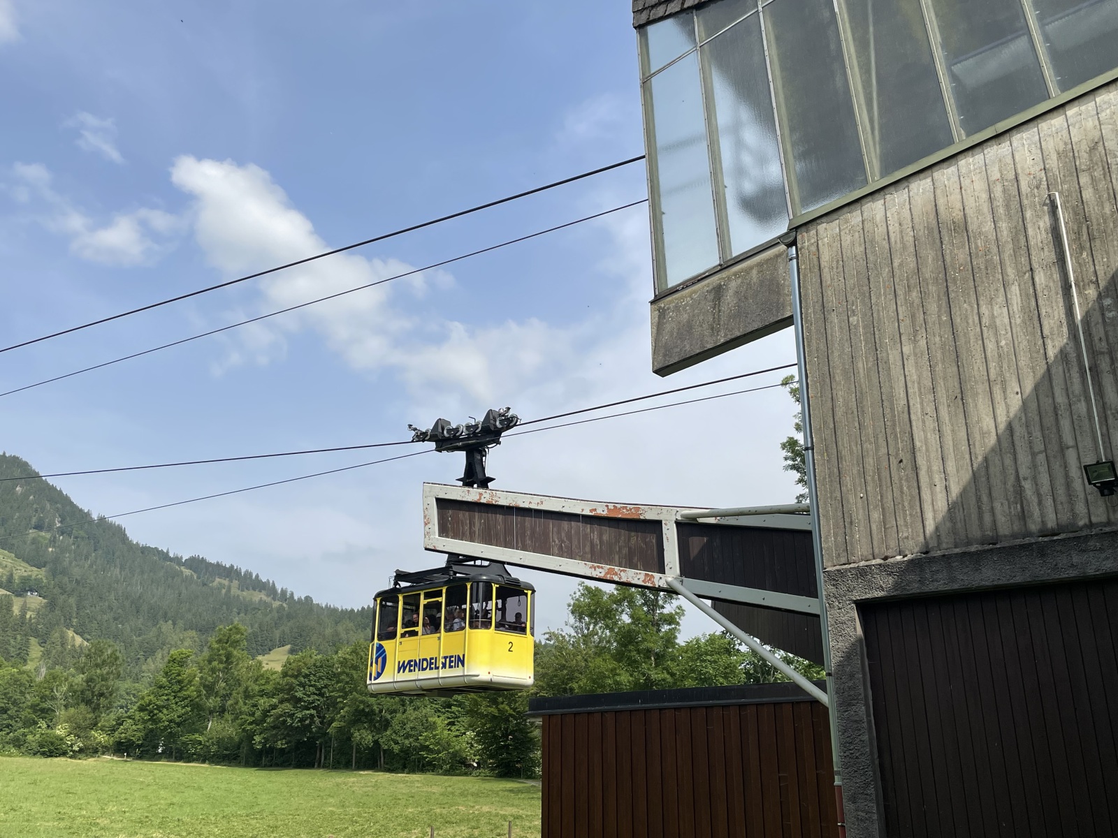 Auf dem Rückweg halten wir an der Talstation der Wendelsteinbahn. Hier steht übrigens das gesamte Filmteam vom Filmdreh Frühling. Der Wendelstein ist 1838 Meter hoher Berg der Bayrischen Alpen. Er ist der höchste Gipfel des Wendelsteinmassivs. Wir lesen das Prospekt und erfahren, das man mit der Wendelstein-Seilbahn oder der Wendelstein-Zahradbahn hinauf fahren kann. Oben angekommen eröffnet sich dann ein traumhafter Panoramablick auf die Alpen. An der Bergstation liegen das Wendelsteinhaus, das Wendelsteinkircherl, die Wendelsteinhöhle und die Aussichtsplattform Gacher Blick. Von da aus blickt man über 200 Berggipfel. Außerdem befindet sich da oben eine Wetterwarte, der rot-weiße Sendemasten des Bayerischen Rundfunks und eine Sternwarte. Der Bereich kann nur mit einer gebuchten Führung besichtigt werden. Natürlich kann der Gipfel auch durch eine 2-4 stündige Wanderung erklommen werden.