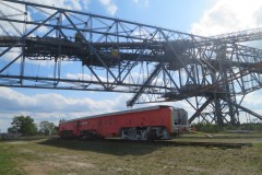 Wir weiter nach Lichterfeld, eine Gemeinde im südbrandenburgischen Landkreis Elbe-Elsternahe Finsterwalde zum Besucherbergwerk F60. Hier steht ein Gigant der Technik: 502 Meter lang, 204 Meter breit, 80 Meter hoch und 11.000 Tonnen schwer. Wir gehen einen Fußweg entlang und dann steht er vor uns, der Eifelturm der Lausitz. Die ehemalige Abraumförderbrücke F60 erzählt von Geschichte und Gegenwart des Braunkohlenbergbaus in der Lausitz. Die Förderbrücke ist seit 1998 zugänglich und auf ihrer Spitze befindet sich in 75 Meter Höhe eine Aussichtsplattform mit aufgesetztem Rundumaussichthaus. Was der Mensch erst gedacht und dann gemacht hat ist schon echt beeindruckend. Mitten in der Weite liegt mal eben ein Eifelturm auf dem Boden. Sehr interessant. Das muss man gesehen haben. Wirklich gigantisch.
