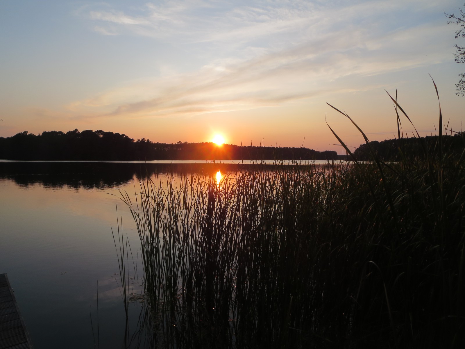 Das Wetter lädt heute geradezu dazu ein zum Wohnmobilstellplatz „Camping am Großen Mochowsee“ 51°58´56´´N/14°13´4´´E zu fahren. Der Großer Mochowsee liegt landschaftlich reizvoll inmitten der Niederlausitzer Wald-und Seengebietes am Übergang von der Lieberoser Heide zum Spreewald. Wir bekommen einen leicht schattigen Platz direkt am See. Etwas später gehen wir zum See und verbringen dort eine ganze Weile mit einem herrlichen Sonnenuntergang. Wir sitzen noch lange draußen und besprechen unsere Weiterfahrt. Wir wollen noch meine Freundin in Berlin besuchen und vorher noch Potsdam erkunden. Wir liegen gut in der Zeit und nehmen morgen den Weg über die Dörfer und nicht über die Autobahn.
