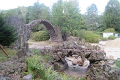 Im Azaleen- und Rhododendronpark Kromlauer in Gablenz im Landkreis Görlitz wollen wir uns die Rakotzbrücke ansehen. Sie steht im 200 Hektar großem Landschaftspark. Angekommen stellen wir fest, dass wir schon wieder Pech haben. Wir können die Brücke nicht mit Wasser sehen, da der Fluss für Bauarbeiten trocken gelegt worden ist. Wirklich schade. Somit spazieren wir durch den Park und sehen uns die Brücke und die Statur trotzdem an und sind auch so beeindruckt. Auch ein Muss wenn man hier in der Nähe ist.