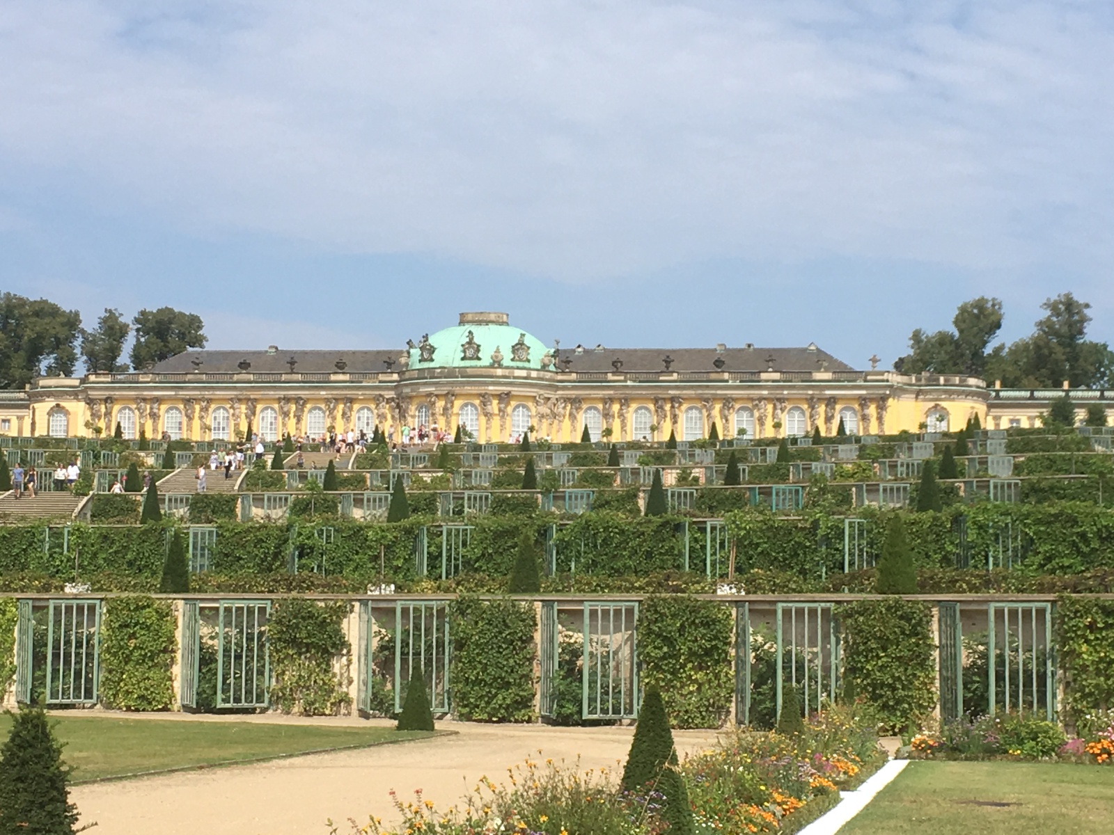 Jetzt geht nach Potsdam zur Hauptstadt des Landes Brandenburg. Potsdam liegt an der Havel in einer Wald- und Seenlandschaft und ist bekannt durch das Schloss Sanssouci und den Filmstudio Babelsberg. Angekommen in Potsdam fahren wir zum Wohnmobilstellplatz „Parkplatz am Krongut“ 52°24´47´´N/13°1´44´´E und suchen uns einen schattigen Platz. Der Platz ist schön angelegt und das Beste daran ist, das er Schloss- und Stadt nah ist. Hier können wir alles zu Fuß und mit den Fahrrädern erreichen. Hier bleiben wir 3 Tage um Potsdam zu erkunden. Ein netter Mann erklärt uns auch gleich den besten Weg direkt hinter dem Platz zum Schloss und einen guten Fahrradweg zu den Filmstudios. Heute geht es gut gestärkt erst einmal zum Schloss Sanssouci – übersetzt „ohne Sorge“. Wir fangen mit dem Schloss und arbeiten uns weiter und weiter durch den Park. Sanssouci strahlt noch heute in altem Glanz. Die Räume sind mit all ihren eleganten, stilvollen Ausstattungen original erhalten. Und der weitläufige Park mit den anderen Schlossgebäuden wie dem Neuen Palais, den Neuen Kammern, dem Chinesischen Haus, der Orangerie oder dem Schloss Charlottenhof ist schöner und eindrucksvoller als je zuvor. Dann kommen wir zur Friedenskirche. Die Friedenskirche in Potsdam zählt zu einem wunderschönen Beispiel der Kirchenarchitektur und sollte bei einem Besuch des Schlossparks von Sanssouci auf keinen Fall verpasst werden. Wir kommen zum Brandenburger Tor am Luisenplatz, gehen hindurch und sind auch schon in der Innenstadt. Wir suchen uns erst mal ein Café um uns zu stärken. Es macht Spaß dem bunten Treiben hier zu zusehen. Auch wir bummeln jetzt weiter und wollen uns noch die St. Peter Paul Kirche, das Nauener Tor, das Jägertor und das Holländische Viertel ansehen. Danach geht es am Obelisk mit gleichnamigem Portal und am Triumphtor am Winzerberg vorbei. Nach so vielen Eindrücken geht es jetzt zurück zum Platz und wir werfen noch einen Blick auf die Historische Mühle von Sanssouci. Jetzt noch schnell etwas einkaufen und dann relaxen. Wir sitzen noch lange draußen. Eine Frau nebenan spielt Akkordeon und das ganze gibt eine schöne Atmosphäre.