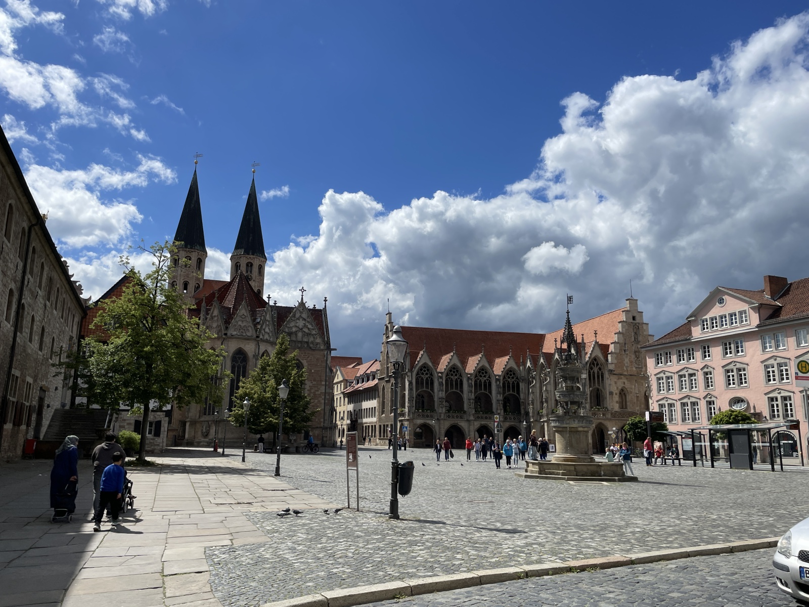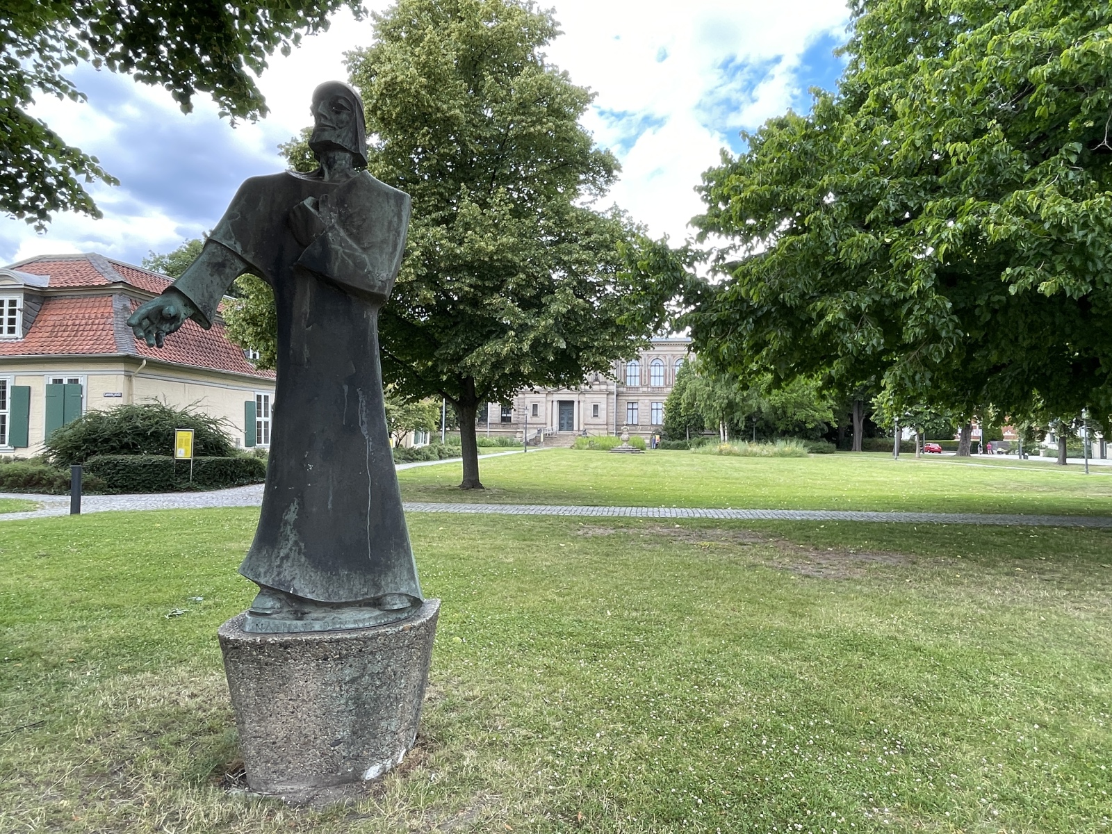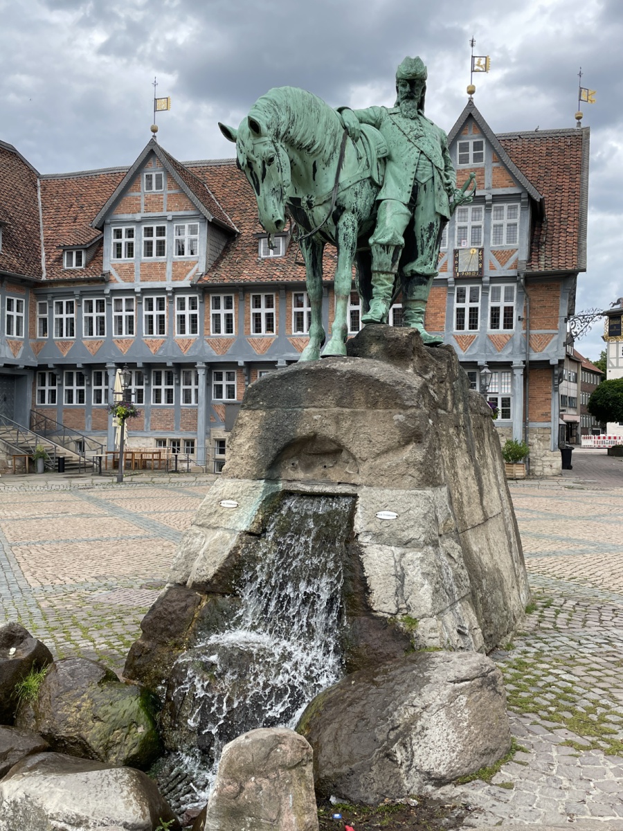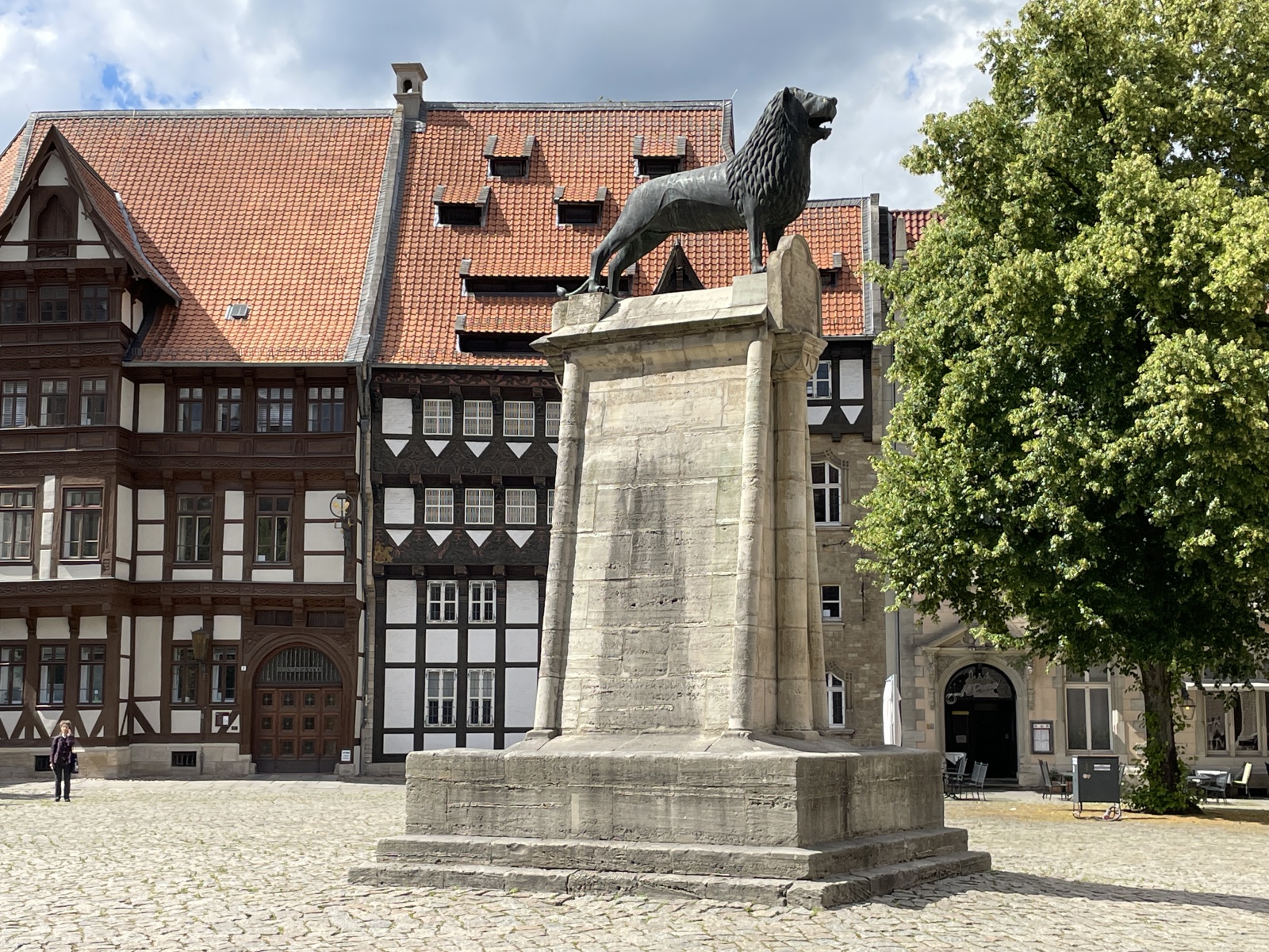Das Buch GEOPARK – Die klassischen Quadratmeilen der Geologie vom Harz Braunschweiger Land.Ostfalen haben mich inspiriert diese Städtetour auszuarbeiten. Somit fahren wir zuerst nach Braunschweig zum Wohnmobilstellplatz „Wohnmobilstellplatz am Bürgerpark in Braunschweig“ 52°14´59´´N/10°31´10´´E. Schnell ist ein Platz gefunden und wir erreichen die Großstadt in Niedersachsen schnell zu Fuß. Braunschweig ist nach Hannover die zweitgrößte Stadt Niedersachsens. Durch Heinrich den Löwen entwickelte sich die Stadt sehr schnell zu einer mächtigen und einflussreichen Handelsmetropole. Heute ist die Stadt ein europäischer Standort für Wissenschaft und Forschung. Der bronzene Löwe ist bis heute das Wappentier der Stadt. Die Burg Dankwarderode, der Dom St. Blasii und die alten Wallanlagen erinnern noch heute an die Herrschaft Heinrichs des Löwen. Da es viel zu entdecken gibt, nutzen wir eine Karte, die uns einen umfangreichen Stadtrundgang vorgibt. Wir gehen durch den Bürgerpark und sehen schon von weiten den Türmer. Ein Türmer steht immer auf den höchsten Gebäude der Stadt. Hier in Braunschweig steht die 4 Meter hohe Bronzeskulptur auf dem Wasserturm. Sie erinnert an die Tradition der Turmwächter und deren Aufgabe war es, die Stadt vor Gefahren zu schützen. Dieser Turmwächter hat sein Blick auf das Schloss und das Rathaus gerichtet. Wir gehen weiter und kommen am alten Bahnhof vorbei. Heute ist es der Sitz der Braunschweiger Landessparkasse. Über einem Imbiss entdecken wir ein besonderes Schaufenster. Feinste Auswahl Alkoholischer Getränke sind hier ausgestellt. Sehr schön auch die Fassade der Commerzbank. Ein Schild mit dem Hinweis vom Hochwasser ziert eine Hauswand. Vor dem Gebäude der ehemaligen Oberpostdirektion sehen wir den Brunnen mit der Skulptur Befreiung des Menschen aus starren Bindungen und Normen. Bei diesem Brunnen müssen wir zweimal hinsehen, um die verschiedenen menschlichen Teile zu erkennen. Dieser Brunnen ist gewöhnungsbedürftig.