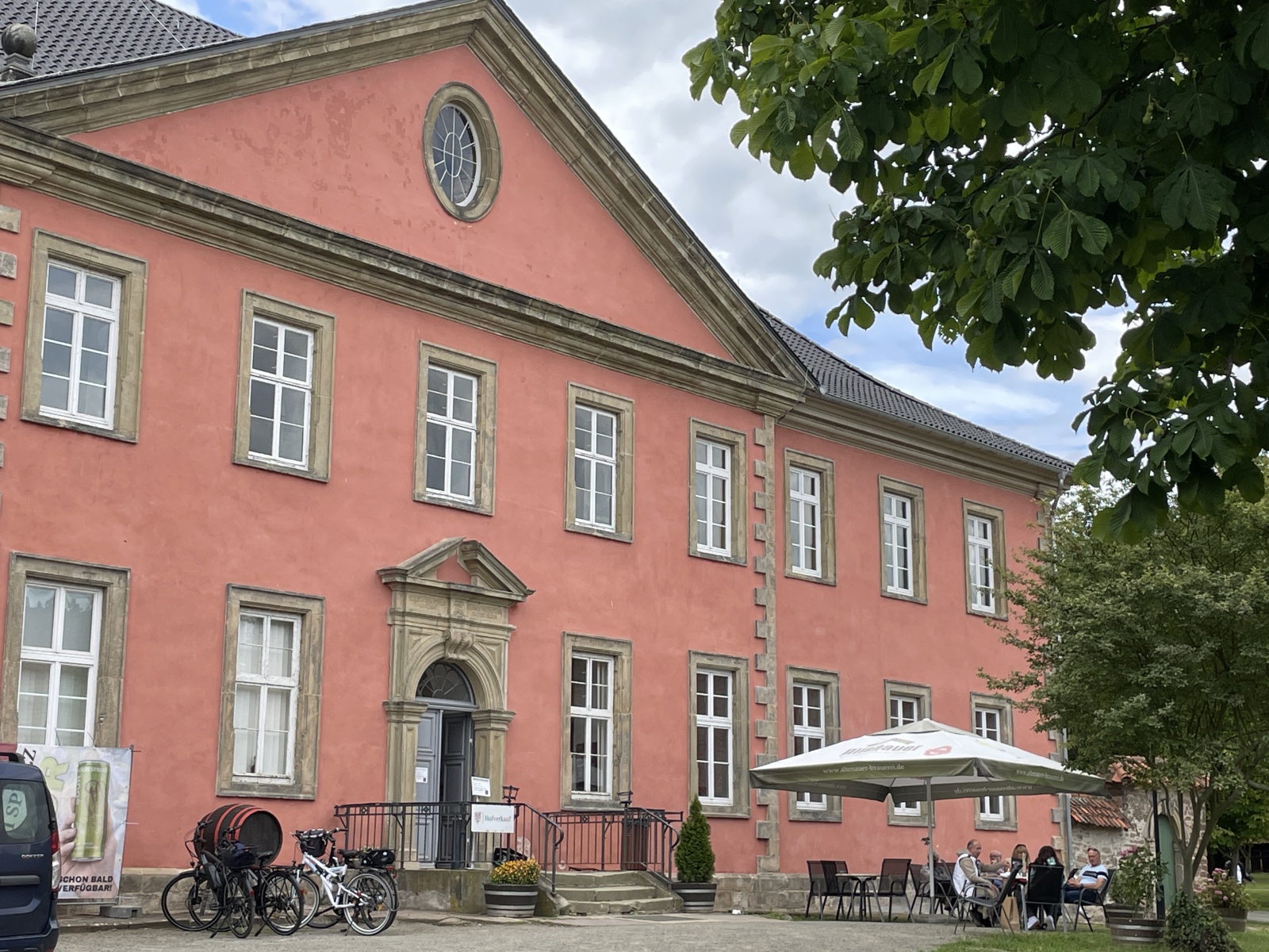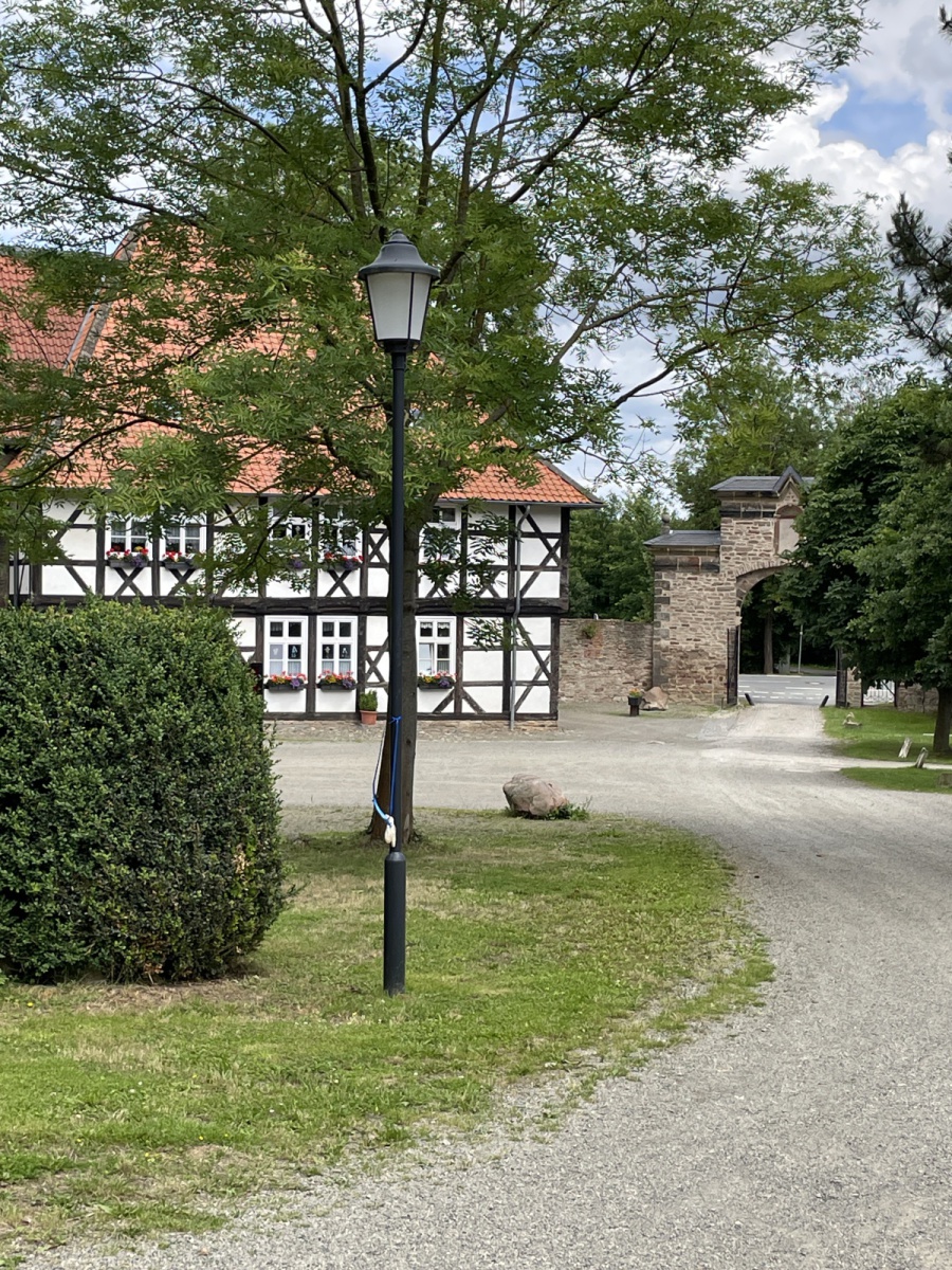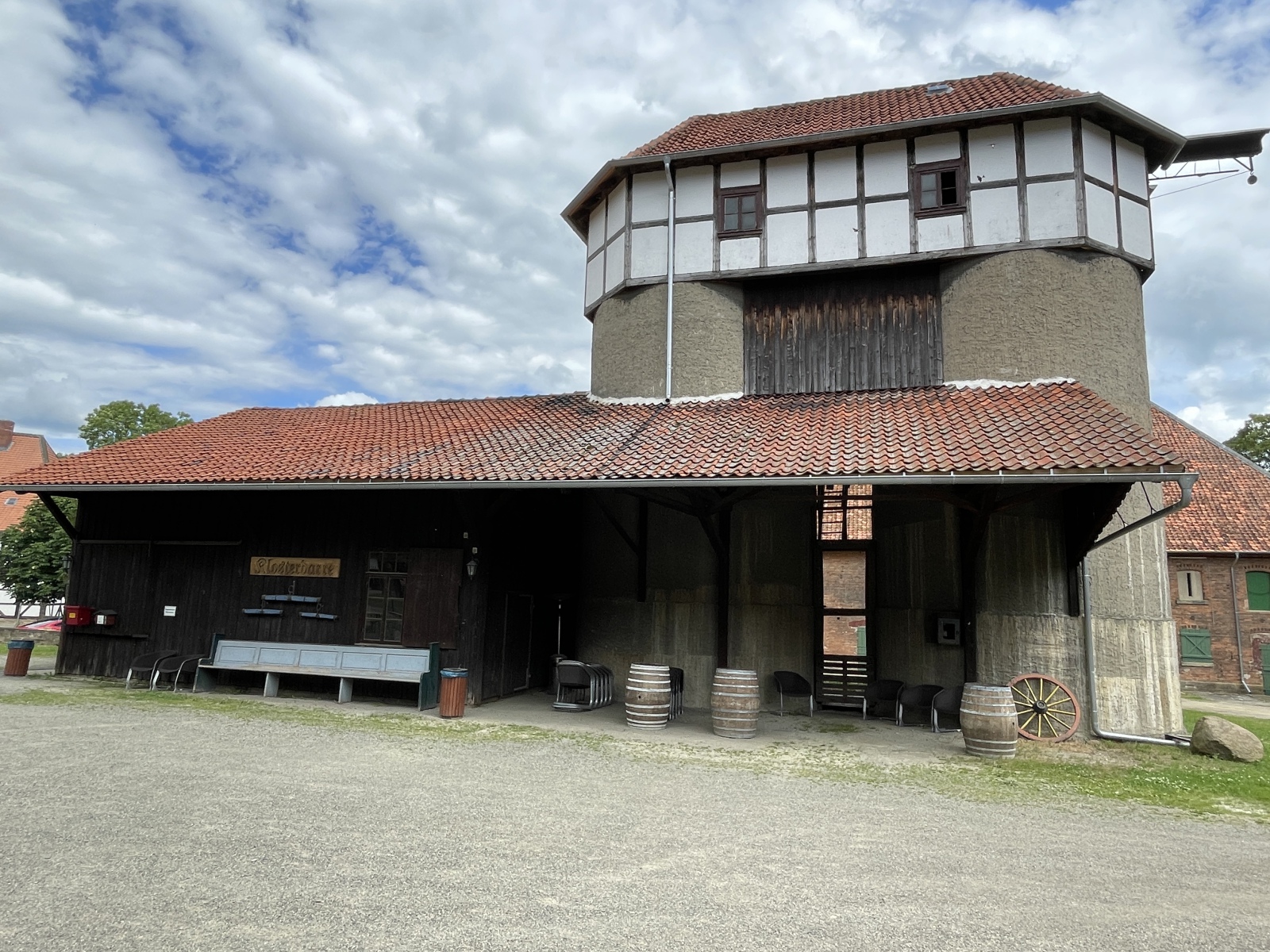 Wir fahren jetzt zu einem Ort, wo sich Geschichte und Moderne auf einzigartige Weise verbindet. Allein der Weg durch die Natur dahin ist genauso einzigartig und malerisch. Es geht zum Kloster Wöltingerode und hier stehen wir auf dem Wohnmobilstellplatz „Wohnmobilstellplatz Wöltingerode“ 51°57´38.0´´N/10°32´33.3´´E direkt auf dem dazu gehörigem Parkplatz. Somit haben wir es nicht weit zu dem Kloster. Das Kloster Wöltingerode liegt im nordwestlichen Harzvorland und gehört zum Stadtteil Vienenburg. Es wurde als Benediktinerkloster gegründet und danach wurde es ein Kloster für Zisterzienserinnen. Heute wird es als Klosterhotel und für eine Brennerei genutzt. Wir beginnen unsere Besichtigung am großen Eingangsportal. Hier ist die Zufahrt zum Klostergelände. Wir beginnen unseren Rundgang bei der Klosterkirche. Es handelt sich um eine romanische Basilika. Wir hätten sie gerne von innen betrachtet, aber leider war die Tür verschlossen. Bevor wir durch den interessanten Kräutergarten gehen, werfen wir einen Blick in Klosterimkerei. Der Kräutergarten hatte eine wichtige Bedeutung, nicht nur für die medizinische Versorgung der Nonnen. Der Weg geht weiter durch das Dammwildgehege vorbei am Klosterkrug mit Biergarten und kommen jetzt zum Lachscenter. Dieses befindet sich im alten Mühlengebäude. Es bietet spannende Informationen über Lachse, die heimischen Fischarten und ihre Lebensräume. Was zum Erhalt der einzigartigen Lebensräume unter Wasser getan wird, soll an dem bekanntesten Wanderfische, dem Atlantischen Lachs, gezeigt werden. Sehr informativ. Es am Hotel vorbei zur Klosterbrennerei. Diese Brennerei ist berühmt für seine edlen Spirituosen. Nach alter Tradition wird aus klarem Quellwasser, Gerstenmalz und Weizen zunächst ein Rohbrand hergestellt. Dann erfolgt der zweite Brand. Alles in kupfernen Brenngeräten. Das Ergebnis gibt ein Korn von höchster Qualität. Die Lagerung erfolgt in Eichenfässern. Alles bis zur Flaschenabfüllung wird eigenständig hergestellt. Das traditionelle Herstellungsverfahren reicht bis zum Jahre 1682 zurück. Im Hofladen schauen wir die Produkte an. Es gibt eine Auswahl köstlicher Spirituosen und Liköre sowie ausgewählte regionale Spezialitäten. Das sieht alles sehr lecker aus. Es gibt außerdem auch noch Honig, Mettwurst und feine Schokolade. Unser Fazit aus unserem Rundgang im Kloster ist, das man gut schlafen, lecker essen, viel über Fische erfährt, hochwertige Spirituosen verkosten und Mitbringsel für die Lieben erwerben kann. Auch wir haben uns etwas zu trinken und Kuchen aus dem Hofladen gegönnt und uns draußen einen netten Platz gesucht. Bevor wir zum Wohnmobil zurück gehen, spazieren wir noch ein bisschen über das Klostergelände und schauen uns das ein oder andere Gebäude noch mal genauer an.