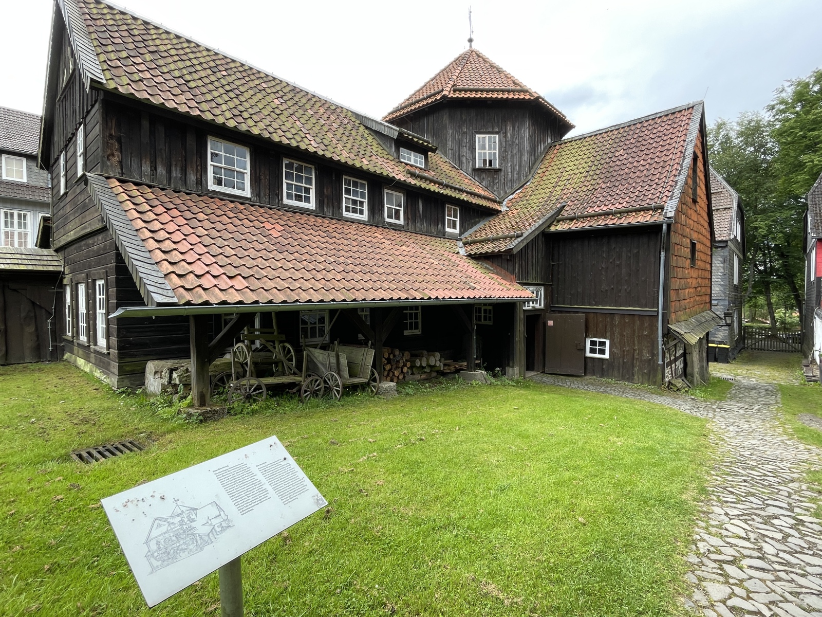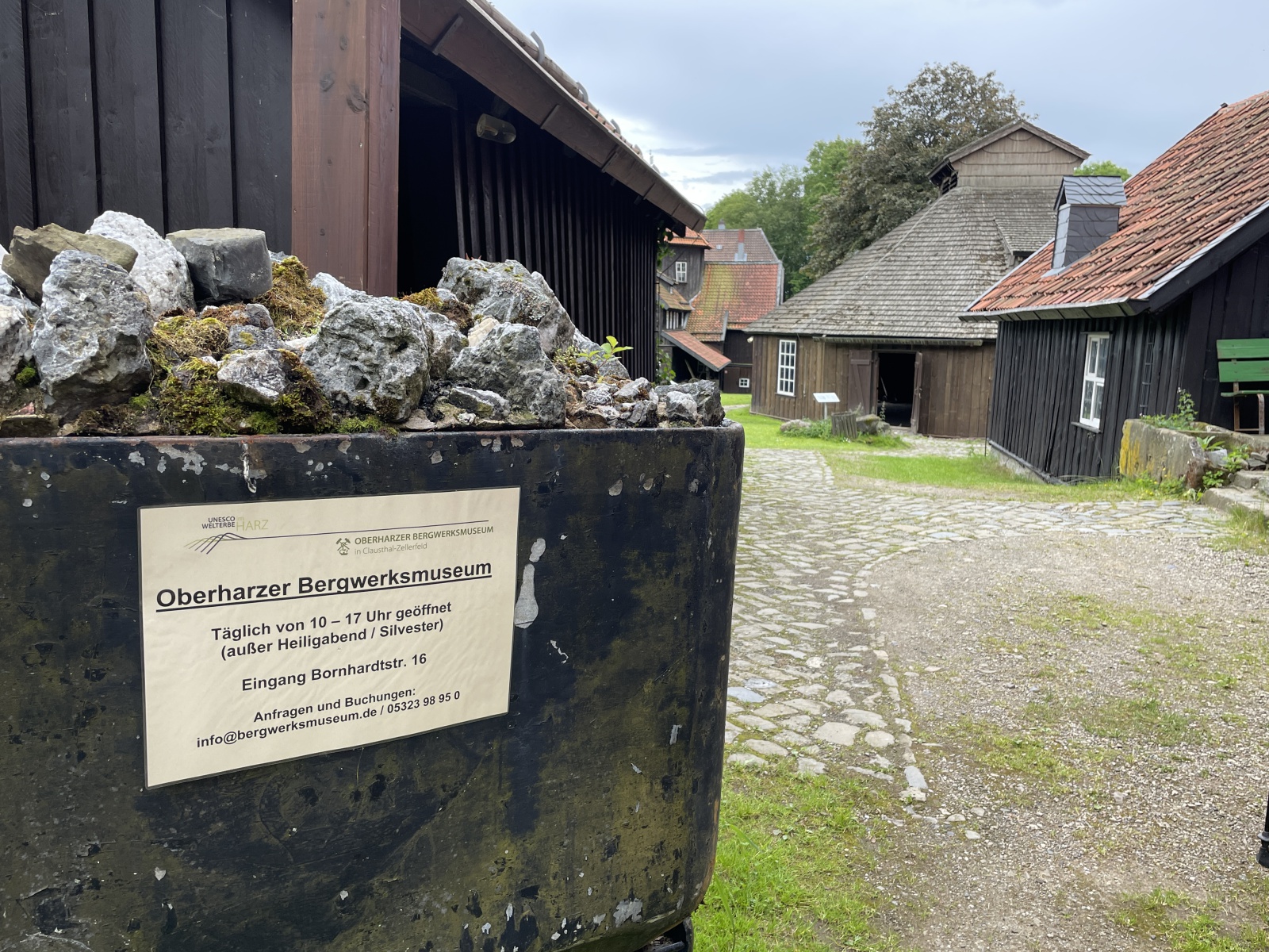 Unsere Letzte Station ist das Oberharzer Bergwerkmuseum. Dies ist ein Museum für Technik und Kulturgeschichte. Als wir an der Kasse sind, weist uns die nette Dame darauf hin, doch zuerst in das Informationszentrum zu gehen. Dort erhalten wir sehr wichtige Informationen über die Welt des Bergwerks. Das machen wir natürlich auch und sind im nach herein ganz froh, das wir diese Info bekommen haben. Wir gehen zurück und sehen uns erst einmal die Ausstellung in dem Gebäude an. Jetzt geht es nach draußen. Auf dem Museumsgelände befinden sich ein Besucherbergwerk mit einem 250 Meter langen Besucherstollen und originale Bergwerksgebäude. Außerdem können wir hier die einzige erhaltene bergbauliche Pferdegaipel Deutschlands, die einzige Erzaufbereitung mit einem Pochwerk und das Schachtgebäude aus dem Jahre 1787 sehen. In den 30 Schauräumen erhalten wir Einblick in das Leben und der Arbeit aus dem Mittelalter. Auch sehr sehenswert ist die alte Schulklasse, die Herstellung alter Drahtseile, eine Münzprägung, Mineralien, Werkzeuge und Grubenlampen.Wir sehen uns auch eine Originalfilmaufnahme aus dem Schacht Silbersegen und dem Schacht Kaiser Wilhelm II aus dieser Zeit in einem Schauraum an. Man kann sich die Arbeitsbedingungen von damals kaum vorstellen. Wir können das Museum sehr empfehlen. Es ist umfangreich, sehenswert und informativ. Es hat uns als Laien einen sehr guten Überblick über das Bergwerksgeschehen gegeben.