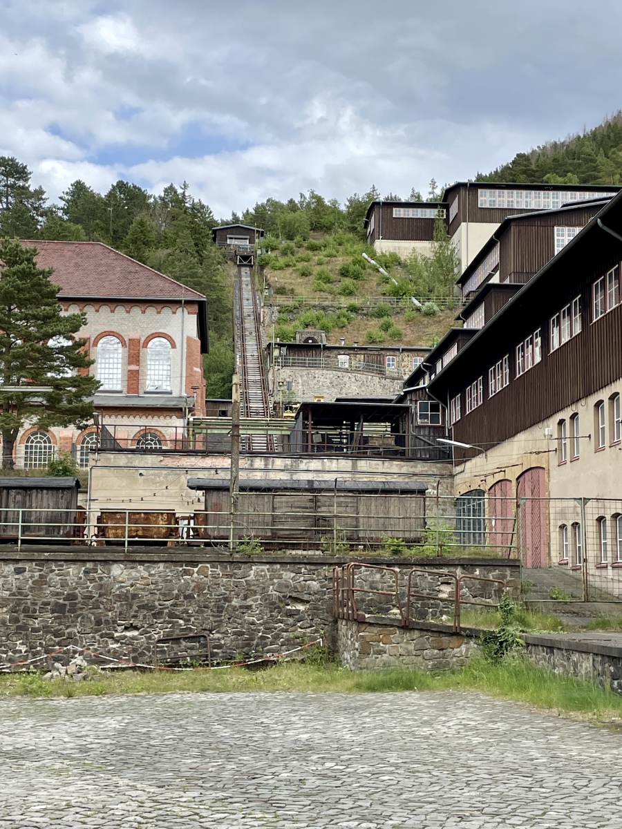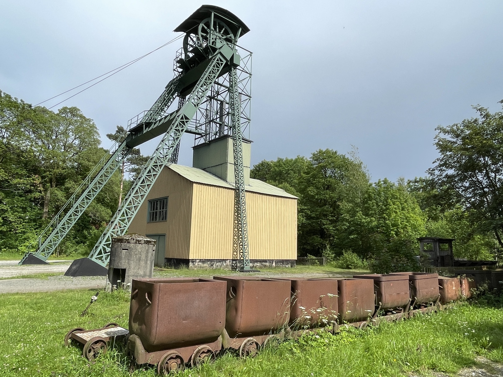 Ein kleiner Weg führt uns zum Ottiliae-Schacht. Er liegt auf einer Anhöhe, die Bremershöhe genannt wird. Schon von weiten sehen wir den 19,86 Meter hohen stählernen Förderturm. Er ist der älteste und gehört zu den bekanntesten montanen Sehenswürdigkeiten der Region. Ein Zeugnis der Industriegeschichte. Der Schacht hatte eine Tiefe von 594 Meter. Man kann diesen Ort auch mit der einstigen Grubenbahn über die Schienen erreichen.Sie diente damals auch dazu, die Arbeiter zu ihren Arbeitsstätten zu fahren. Der Schacht stellt kein eigenständiges Bergwerk. Er war ein zentraler Hauptförderungsschacht des ganzen Reviers. Wir gehen über das ganze Gelände und entdecken die alten Loren und Stapel mit alten Schienen. Irgendwie hat das hier auch etwas von einem Lost Places. Auf jeden Fall sehr spannend und empfehlenswert. Es ist schon spät geworden und somit machen wir auf und fahren zum Platz.