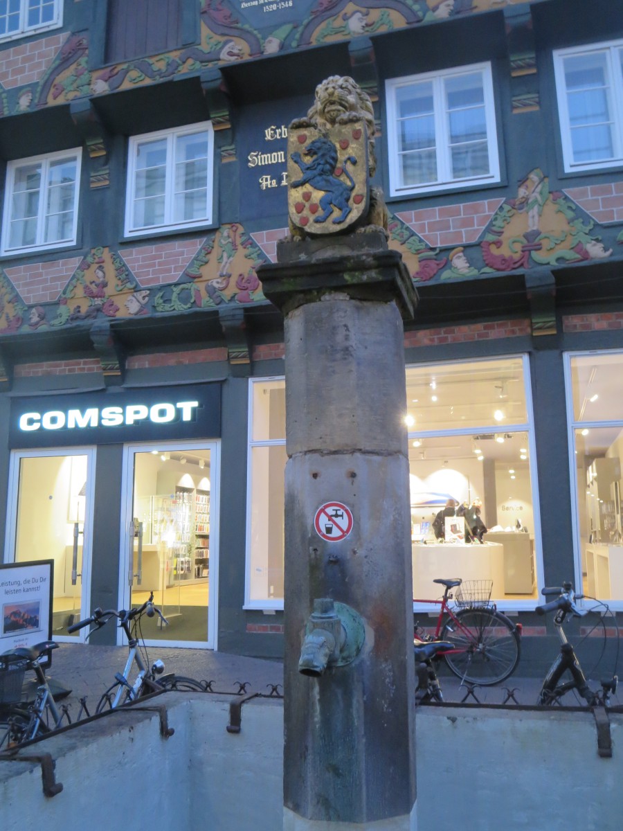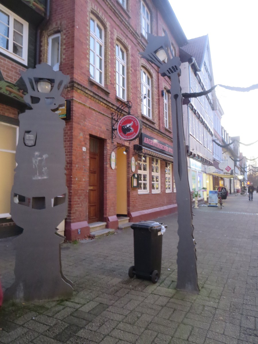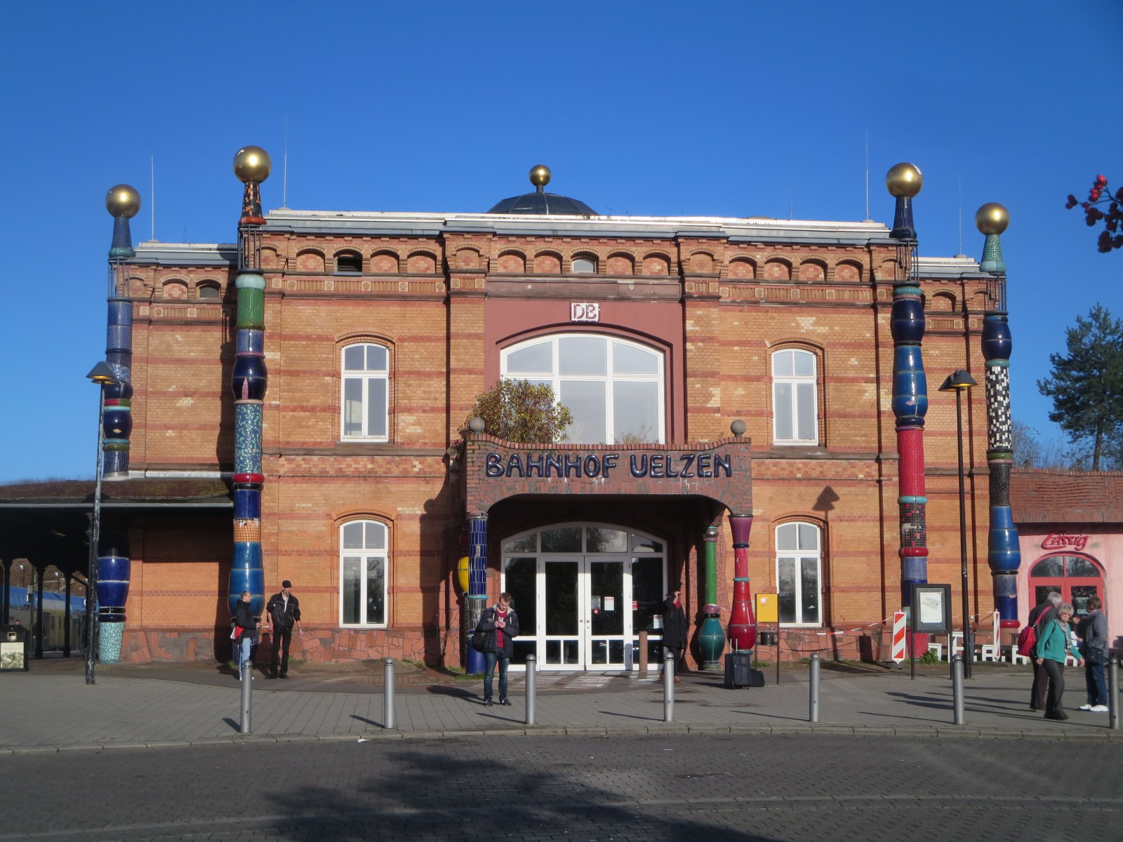 Nach einem ausgiebigen Frühstück führte uns die Reise nach Uelzen. Dort angekommen finden wir auch gleich einen Platz auf dem Wohnmobilstellplatz „Uelzen am Elbe-Seitenkanal“ 52°57´26´´N/10°35´37´´E. Wenn man in Uelzen ist, sollte man sich den „Hundertwasser-Bahnhof“ schon ansehen und das haben wir dann auch als erstes getan. Er ist nicht sonderlich groß, aber liebevoll gestaltet. Bunte Säulen, Keramik, geschwungene Wände und Emporen und im Untergeschoss ein (trocken gelegter) Brunnen sind dort anzusehen. Kleine Geschäfte befinden sich in der Passage. Auch der Durchgang zu den Zügen und die Bahnsteige selbst sind mit farbigen Säulen und Fliesen verziert. Ein ganz besonderer Bahnhof, der sich wohltuend von sämtlichen anderen, zum Teil sehr hässlichen Bahnhöfen in Deutschland abhebt. Unbedingt mal besuchen. Es lohnt sich! Auch wenn man den Künstler nicht unbedingt mag. Vom bunt-modernen Bahnhof zu den hübsch restaurierten Fachwerkgiebeln der Altstadt führt uns der „Weg der Steine“ der schwedischen Künstlerin Dagmar Glemme. Die 21 bunt bemalten Felsen wiegen bis zu acht Tonnen und messen etwa drei Meter. Traumhafte Tiermotive und Phantasiewelten gibt es zu entdecken. Jeder Stein ist einem Thema gewidmet. Man sollte sich schon etwas Zeit nehmen, um auch die einzelnen Details zu entdecken. Hilfreich ist ein Faltblatt. Dieses Faltblatt gibt es im Hundertwasser-Bahnhof. Ich persönlich mochte die sehr bunten Farben und die unzähligen Motive. Es ist schon sehr interessant, was man auf jedem einzelnen Stein alles finden kann. Hier stehen die Kunstwerke mitten in der Stadt. Ist doch auch mal was! In der Altstadt befinden sich viele schöne, alte Gebäude. Unter anderem das Stadtbauamt, das alte Postamt und das Gildehaus mit seinem typischen Giebel aus der Hansezeit. In den Giebel-Balken der Fachwerkhäuser haben sich traditionell die Eigentümer mit Abbildungen und Sprüchen verewigt. Diese sind heute zum größten Teil noch erhalten. Sehenswert sind außerdem der historische Schnellenmarkt, das alte Rathaus und die Ratsweinhandlung „NIGE HUS“. Hat man dann noch ein bisschen Zeit und Durst, sollte man unbedingt in die „Hannemann´sche Twiete“ gehen. Das ist eine hübsche, kleine Gasse. Diese führt über einen Hof zu dem liebevoll gestalteten Biergarten mit Café. Hier lässt es sich gut sitzen, um die Eindrücke auf sich einwirken zu lassen. So ein Tag geht immer schnell vorbei und wir machen uns wieder auf den Rückweg.