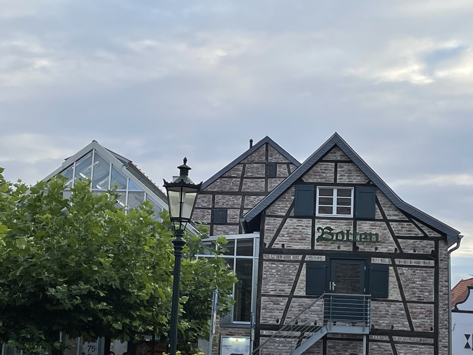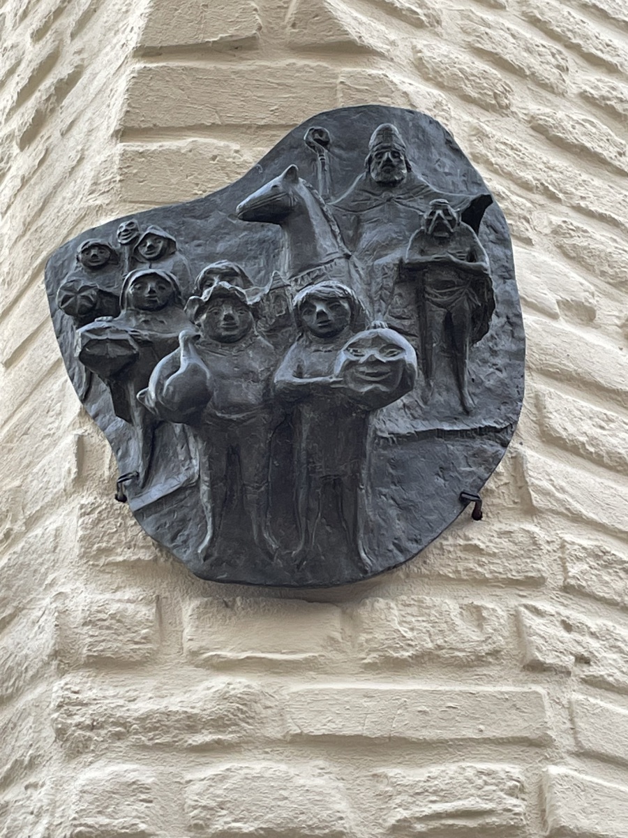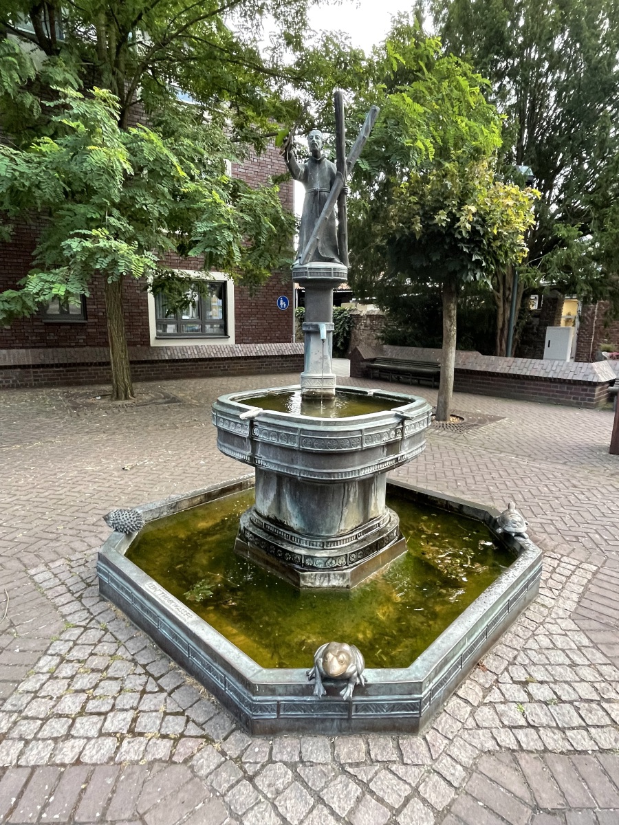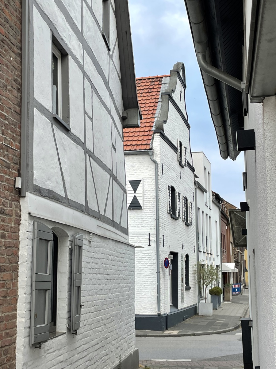 Am Abend fahren wir in die Stadt von Korschenbroich. Uns fällt auf, das es im charmanten und gepflegten Ortskern viel einladende Gastronomie gibt und somit gehen wir erst einmal lecker essen. Wir entscheiden uns für ein Lokal in einem alten Fachwerkhaus, dessen Besonderheit eine durchgängige Glasfassade ist. Tolle Atmosphäre. Im Lokal befindet sich auch noch ein alter Teil mit einer sehenswerten Theke. Ich erfahre, dass hier früher sogar die Pferde mit in die Kneipe durften. Habe sogar ein Beweisfoto bekommen. Nach dem Essen unternehmen wir einen Spaziergang durch die Stadt und haben dafür die besten Stadtführer dabei . Korschenbroich ist modern und geschichtsträchtig zugleich. Die Historie der Stadt dokumentieren zahlreiche Fachwerkhäuser. Sehenswert ist auch die römisch-katholische Pfarrkirche Kirche St. Andreas. Eine Bronzetafel gibt einen kurzen Abriss über die Geschichte der Kirche. Der zum Kirchplatz gerichtete Seiteneingang trägt wegen der kassettenförmigen Reliefs den schönen Namen Verkündigungsportal. Interessant ist auch die bekrönende Engelsfigur mit Trompete. Hier auf dem Kirchplatz steht der Andreas-Brunnen. Ein sehr schönes Gebäude ist auch das ehemalige Gerichts-und Weinhaus Hannenplatz 4. Es wird langsam spät und wir werden zum Platz zurück gebracht. Morgen gibt es noch ein leckeres Frühstück, bevor wir uns wieder auf den Heimweg machen.
