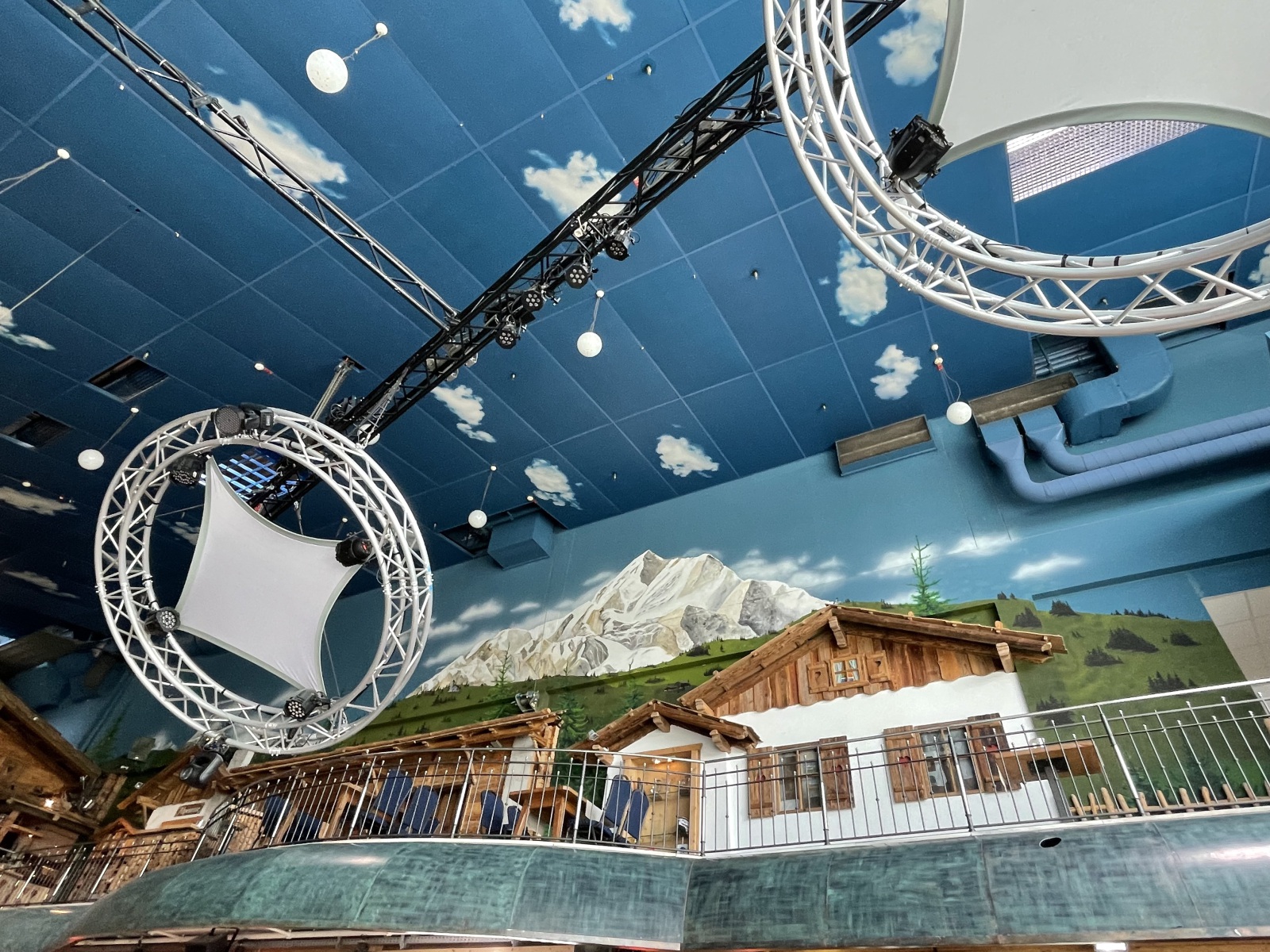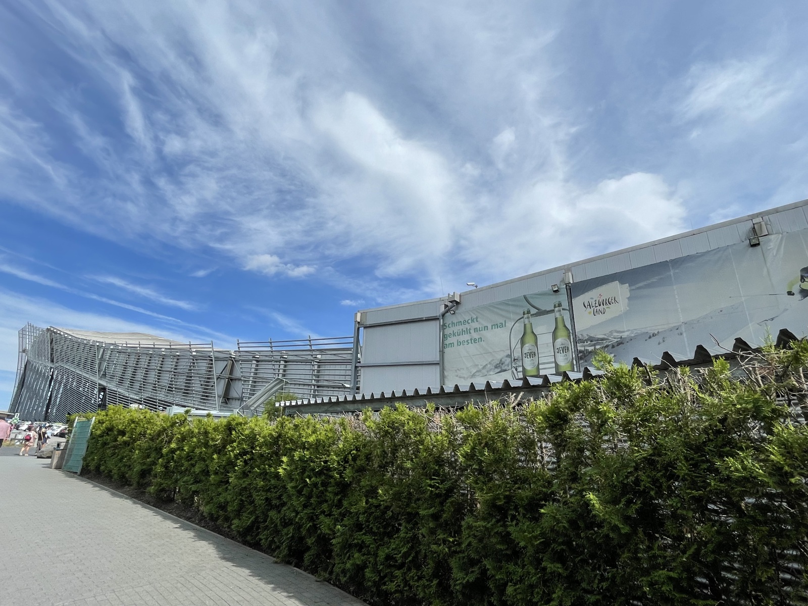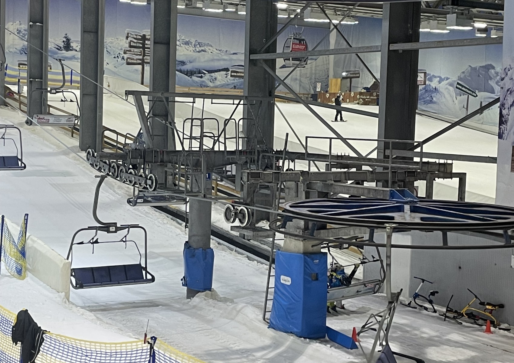 Auf dem Weg zu unseren Freunden ist uns an der Autobahnabfahrt ein ziemlich großes Gebäude aufgefallen. Wir haben danach gefragt und erfahren, dass es sich um die Ski Halle Neuss handeln und sie bieten uns an, uns die Halle mal zu zeigen. Das Angebot haben wir natürlich gleich angenommen. Der Alpenpark Neuss ist ein Aktiv-Freizeitpark am Rand der Stadt Neuss in Nordrhein-Westfalen. Diese im Jahr 2001 eröffnete Skihalle des Freizeitparks war die erste derartige Einrichtung in Deutschland. Sie bildet das Herzstück des Alpenpark Neuss. Zum Alpenpark gehören neben den Wintersportanlagen außerdem diverse Gastronomie, ein Hotel, ein Kletterpark, zwei Almgolfplätze und ein Fun Fußball Parcours. Wir gehen in die Halle, finden gemütlicher Hüttenatmosphäre vor und suchen uns einen Platz vor einem großem Fenster. Von hier aus haben wir einen guten Blick in die Skihalle und können beim Zusehen auch noch sitzen. Welches Angebot. Es ist ganz schön was los hier. Wir erfahren, dass der höchste Punkt der Skipiste in der Halle bei 110 Meter ist, eine Länge von 300 Meter und eine Breite von bis zu 60 Meter. Das Gefälle der Piste beträgt bis zu 28 %. Neben der Hauptpiste existiert in einem Anbau eine kleinere, 100 Meter lange und bis zu 40 Meter breite Nebenpiste für Anfänger und Kinder und zwei Rodelbahnen. Die Halle verfügt über zwei Schlepplifte und vier Laufbänder mit einer Gesamtkapazität von bis zu 5000 Personen pro Stunde. Unter der Hallendecke sind 12 Schneekanonen installiert, die nachts die Pisten mit Kunstschnee berieseln. Wer Lust hat kann sogar in der eigenen Skischule einen Ski- oder Snowboard-Kurs für Anfänger besuchen. Ich weiß gar nicht mehr genau wie lange wir zugesehen haben, aber irgendwann kam der Durst und sind wir nach draußen in den Biergarten um was zu trinken. Ich bin erstaunt darüber, wie viele Menschen hier das Sportangebot wahrnehmen und wie viele Familien sich hier vergnügen. Man erzählt uns, dass selbst Profis der Ski-Nationalmannschaften des Deutschen Skiverbandes die hervorragenden Bedingungen für ihr Training nutzen. Also hier gibt es 365 Tage aktiven Spaß für Jung und Alt, Familien und Gruppen und egal wie warm das Wetter ist: Am Niederrhein liegt immer Schnee.