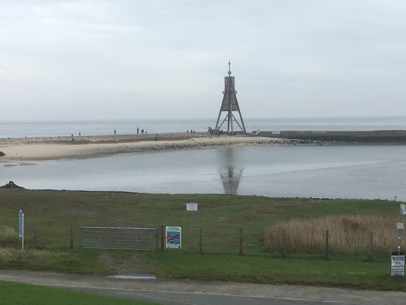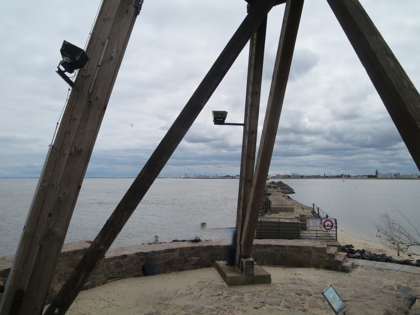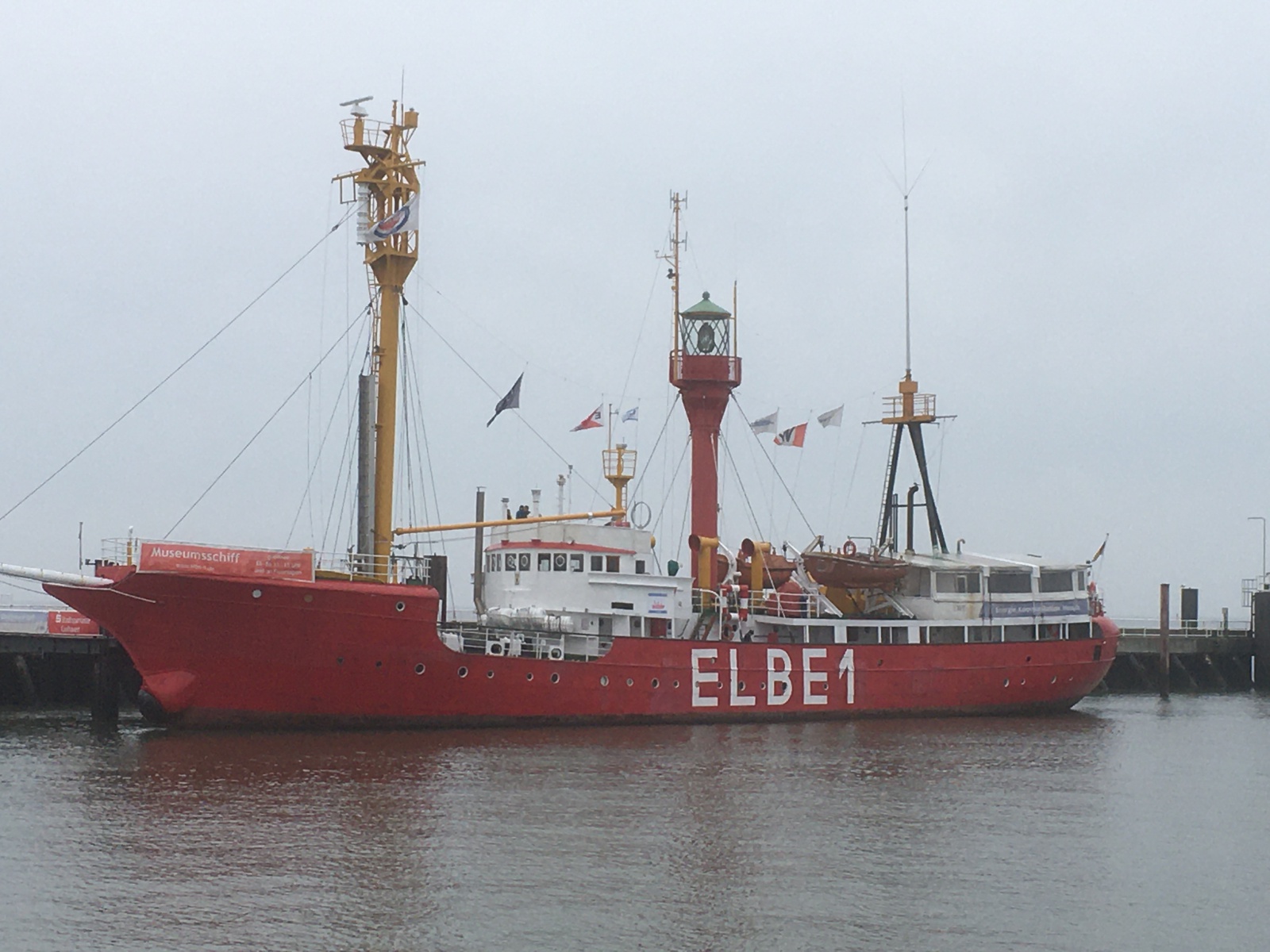Wir machen einen Spaziergang zur Alte Liebe. Die Alte Liebe ist ein ehemaliger Pier im Hafen und dient heute als Aussichtsplattform. Hier werden die vorbeifahrenden Schiffe über Lautsprecher angekündigt und beschrieben. Cuxhaven hat auch 2 Leuchttürme. Zum einen den Leuchtturm Dicke Berta an der Elbemündung und den Hamburger Leuchtturm an der Alten Liebe. Die Dicke Berta ist ein Leuchtfeuer in Cuxhaven-Altenbruch und ist Denkmal geschützt. Der Hamburger Leuchtturm steht auch unter Denkmalschutz, ist eines der Wahrzeichen der Stadt und war bis 2001 noch in Betrieb.