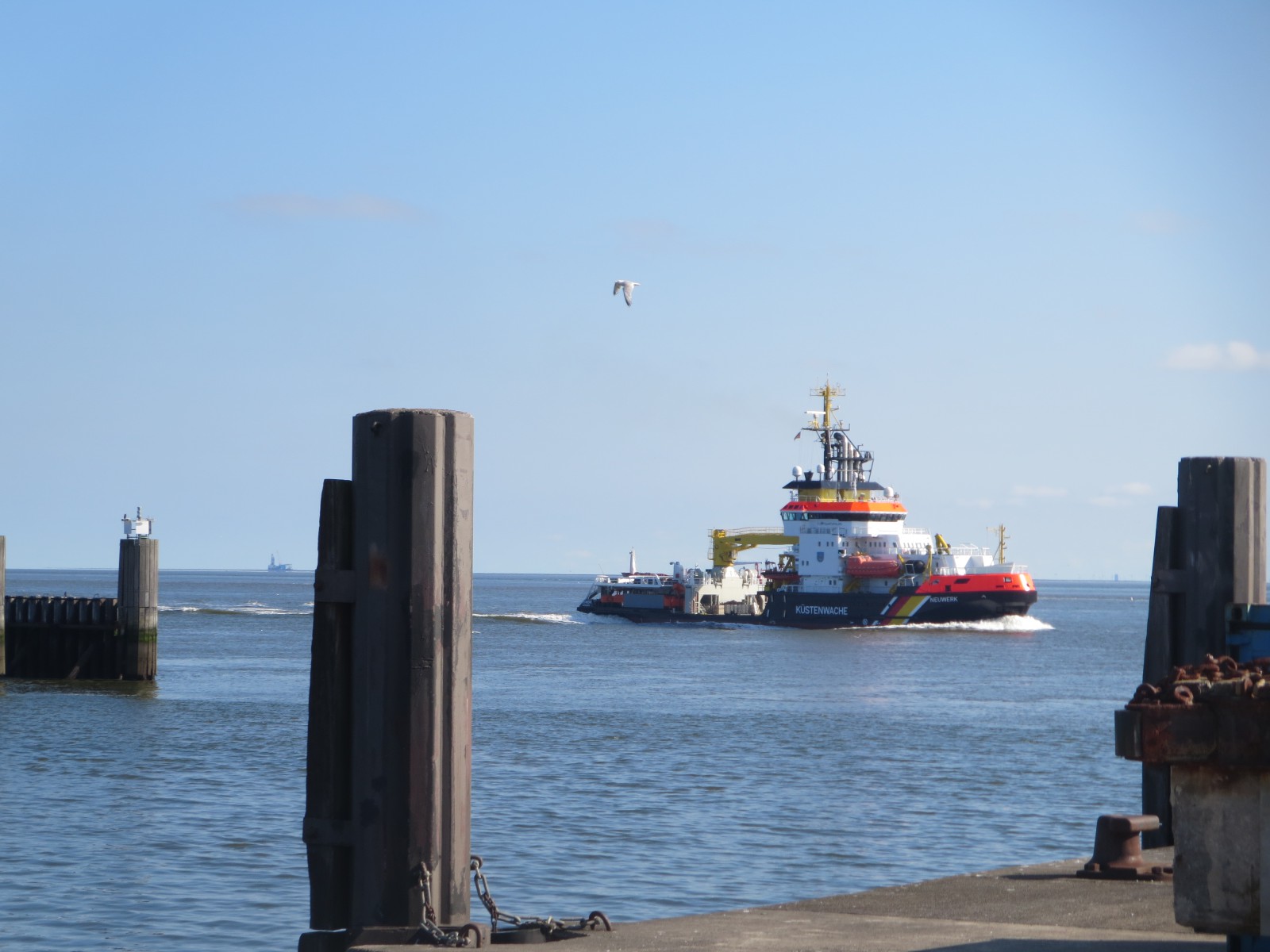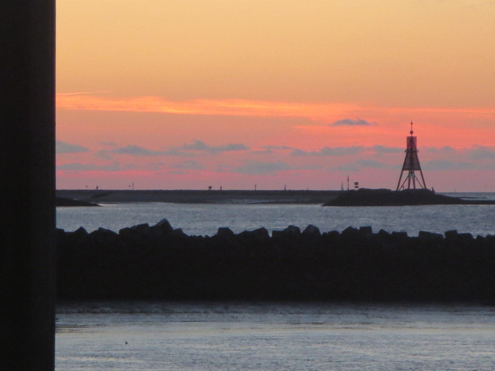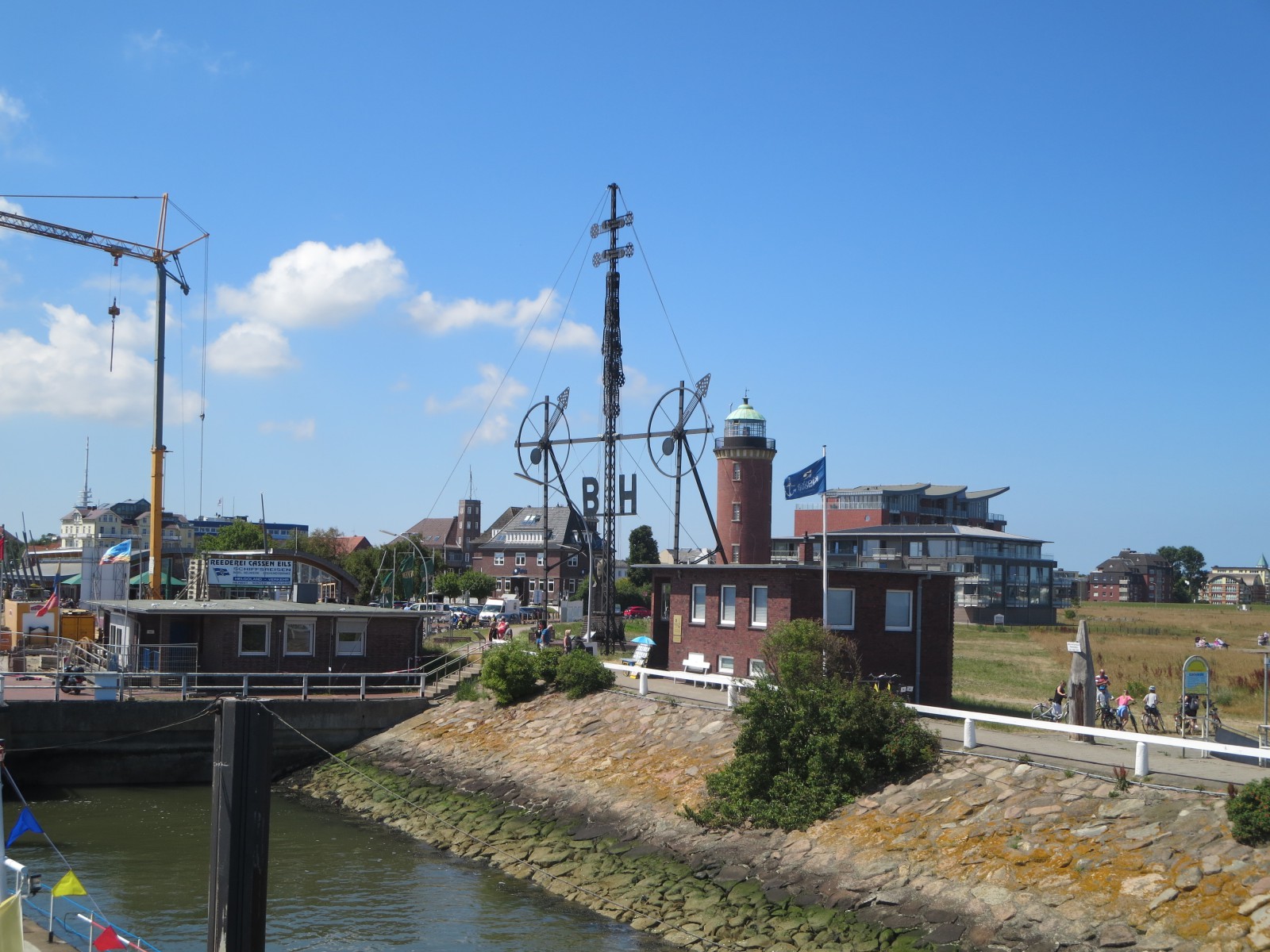 Wir machen einen Spaziergang zur Alte Liebe. Die Alte Liebe ist ein ehemaliger Pier im Hafen und dient heute als Aussichtsplattform. Hier werden die vorbeifahrenden Schiffe über Lautsprecher angekündigt und beschrieben. Cuxhaven hat auch 2 Leuchttürme. Zum einen den Leuchtturm Dicke Berta an der Elbemündung und den Hamburger Leuchtturm an der Alten Liebe. Die Dicke Berta ist ein Leuchtfeuer in Cuxhaven-Altenbruch und ist Denkmal geschützt. Der Hamburger Leuchtturm steht auch unter Denkmalschutz, ist eines der Wahrzeichen der Stadt und war bis 2001 noch in Betrieb.
