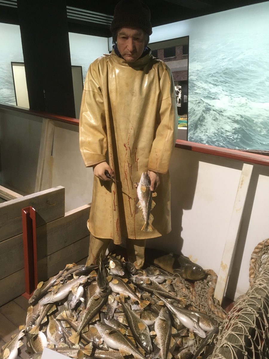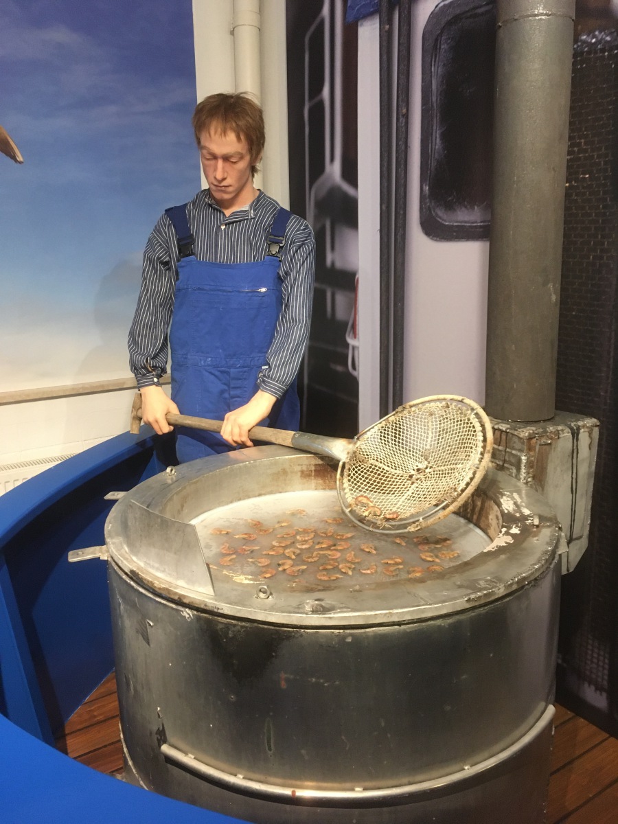 Wir fahren mit dem Fahrrad zum Wrack- und Fischereimuseum Windstärke 10. Hier erleben wir eine Zeitreise über die Stürme, Seenot, Fischerei, Fangmethoden und Fischverarbeitung von Cuxhaven. Die historischen Fischpackhallen wurden mit neuen Ausstellungsräumen verbunden und was das einzigartige Museum zu einem authentischem Ort für die Themen der Fischerei macht. Das Museum zeigt mit viel Bildern und Texten die damaligen Verhältnisse der Matrosen, Fischfabriken, Lebensstandard und der Klassengesellschaft. Wir bekommen einen faszinierenden Einblick in die maritimische Geschichte.